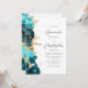 Convites Teal Aqua Floral Gold Script Wedding