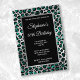 Convites Teal Black and Silver Leopard Glam 50º Aniversário