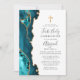 Convites Teal Blue Agate Glitter Dourado Primeira Comunhão