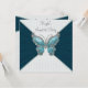 Borboleta azul-teal doce, dezesseis convites de festas de aniversários. Adicione os seus detalhes à frente e atrás adicionando os detalhes do evento, estilo da fonte, tamanho da fonte e cor e texto. Observe que todos os designs de convite que você encontrará no Zazzle são gráficos impressos em estoque de papel plano sem joias reais, arcos, levantados, gravados em relevo ou peças ou peças adicionadas.