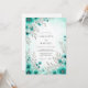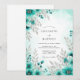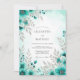 This design features delicate teal blue wild roses and soft silver gray foliage. The ethereal watercolor technique creates a serene and romantic atmosphere throughout the botanical composition. A cool-toned palette of turquoise and charcoal accents provides a refreshing and elegant aesthetic for a seasonal event.