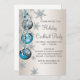 Belos flocos de neve prateados e azuis e ornamentos de festa de Natal e convites de festas de coquetel de férias. Adicione os seus detalhes à frente e/ou atrás simplesmente adicionando os detalhes do evento, estilo da fonte, tamanho da fonte e cor e texto. Observe que todos os designs de convite que você encontrará no Zazzle são gráficos impressos sem joias reais, arcos, levantados, gravados em relevo ou peças ou peças adicionadas.