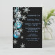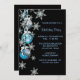 Flocos de neve e ornamentos azuis e prateados, convites de festas de coquetel de Natal.