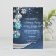 Flocos de neve e ornamentos azuis e prateados, convites de festas de coquetel de Natal.