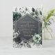 A dramatic yet elegant design features deep teal blooms interwoven with muted green foliage. This enchanting artwork evokes a sense of moody romance, perfect for an autumn or winter affair. The botanical elements create a sophisticated and natural aesthetic.