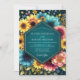 A vibrant display of botanical artistry featuring rich teal, sunflower yellow, and fuchsia blooms. This design evokes a lush, enchanting atmosphere for a special occasion. Delicate foliage and subtle shimmering accents enhance the opulent feel.