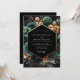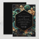 A dramatic composition of deep teal and muted gold blooms creates a rich, enchanting atmosphere. Lush foliage entwines with opulent floral arrangements, evoking a sense of timeless romance. This design features deep jewel tones and intricate botanical artistry for a sophisticated affair.