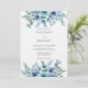A watercolor-inspired botanical design unfolds with lush leaves and delicate blooms in shades of teal and deep blue. This artistic composition evokes a sense of natural elegance and ethereal beauty for your special day. The vibrant yet soft palette sets a tranquil and romantic mood.