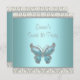 Marfim elegante e damasco prateado com azul-lacrimejante e borboleta prateada doce dezesseis convites de aniversário.