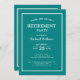 Clássico Partido da Reforma Convide com Texto Personalizável Comemore em estilo com este convite de festas de aposentadoria maravilhosamente projetado. O fundo teal e a borda branca proporcionam uma sensação polida e profissional, enquanto a mistura de fontes serif e sans serif adiciona um toque de sofisticação moderna. As costas espelham o elegante design, com a mensagem sentida, "Esperamos vê-lo!" junto com o espaço para quaisquer detalhes extras. Perfeito para funcionários corporativos ou organizadores familiares, todo o texto pode ser facilmente editado para se adequar ao seu evento específico. Faça seu aposentado se sentir apreciado com este convite para eterno.