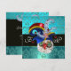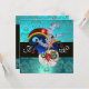 Elegante, sofisticado, legal, design de monograma único com um chapéu Elfico azul verde, corujas engraçadas e expressivas, trevos pedras preciosas rubi safira vibrantes e flores damasco em azul aqua verde e azul turquesa. Fácil de personalizar com suas iniciais e texto próprio como anúncio de festa de aniversário, casamento, cartões de lugar, save-the-date, cartões de agradecimento, chuveiros de noiva, festas, chuveiros de noivado, ou praticamente qualquer evento que você desejar! Modelagem e renderização NURBS muito precisas por Bulgan Lumini (c). Parte da série Hyper Talismans.