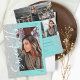 O moderno brilho vítreo moderno brilho mbre brilha guião azul verde convite de aniversário 16. Adicione 4 de suas fotos favoritas com uma fonte moderna com estilo escovado e colagem com grade de fotos.