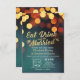 Convites Teal Dourado Bokeh Light EAT Drink Casem-Se