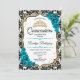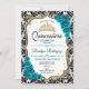 Convites Teal Dourado Elegante Damask Quinceanera