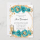 Convites Teal Dourado Peony Geométrico Brunch e Bubble