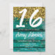 Convites Teal e Dourada doce 16 Festa de aniversário