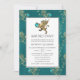 Trendy vintage teal e ouro heráldico bar mitzvah convite com um leão e um griffon com uma gemstone aquamarine.