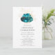 Convites Teal e Dourado Floral Primeira Comunhão Sagrada