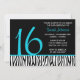 Convites Teal e Zebra Negra Sweet 16 Número Aniversário