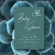 Convites Teal Elegant Script Baby Shower Heart Footprints
