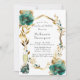 Convites Teal Elegante e Floral Brunch Dourado e Bubble Inv