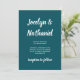 Este simples e minimalista convite para o casamento apresenta um sólido fundo colorido de pele escura, com um tom mais claro e coordenado nas costas, e uma tipografia ousada moderna.