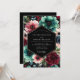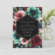 Rich jewel-toned blooms in deep teal, burgundy, and blush create an opulent, romantic atmosphere. This design evokes a sense of luxury with its dramatic floral arrangement, perfect for an elegant affair.