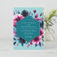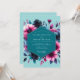 This design features a dramatic and artistic floral composition. Vibrant fuchsia and magenta anemones burst forth alongside deep indigo blossoms, creating a striking contrast against a soft teal background. The painterly, watercolor style lends a modern and sophisticated air to the lush botanical arrangement.