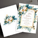 Convites Teal Gold Floral Garden Boho Elegant Wedding