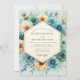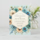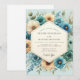 Embrace a romantic and artistic aesthetic with this beautiful painterly design. A stunning palette of teal, soft blue, and creamy gold creates a harmonious floral arrangement. Lush anemone-style blossoms with dark centers are complemented by delicate foliage for an elegant and sophisticated atmosphere.