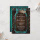 Rustic teal bridal shower invitation featuring a mason jar with two burlap hearts against a barn wood background. Matching items available.