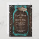 Convites Teal Mason Jar Wood Rustic Couples Shower