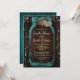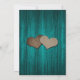 Rustic teal couples shower invitation featuring a mason jar with two burlap hearts against a barn wood background. Matching items available.