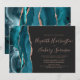 Convites Teal Rose Gold Agate Dark Horizontal Wedding