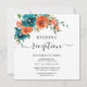 This elegant modern floral wedding invitation features hand painted watercolor flowers in teal and rust orange with modern calligraphy script. You can personalize the wording, font style, color and size in front and back of the invitation. You are welcome to contact me for matching items.