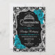 Convites Teal Silver Black Damask Elegante Quinceanera