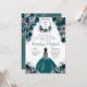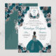 Convites Teal & Silver Floral Elegante Quinceañera