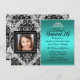 Convites Teal Silver Glitter Damask Foto Sweet 16