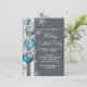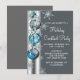 Belos flocos de neve prateados e azuis e ornamentos festas de natal e convite de festas de coquetel de férias. Este elegante convite de festas de Natal azul e prateado é facilmente personalizado para o seu evento, simplesmente escolhendo o botão "Personalizar!" para começar a adicionar detalhes do evento, estilo de fonte, tamanho de fonte, cor e texto. Observe que todos os designs de cartas e convites que você encontrará no Zazzle são gráficos impressos sem joias reais, arcos, levantados, gravados em relevo ou peças ou peças adicionadas.