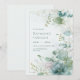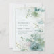 Bring the tranquil beauty of an ethereal garden to your big day with this stunning digital botanical layout. This design features a lush arrangement of translucent teal and sage green leaves, including intricate skeletal veining and soft eucalyptus sprigs. Nestled among the foliage are soft pink and ivory blossoms, their petals delicately rimmed with fine golden lines. A minimalist gold rectangular frame defines the central space, set against a clean, misty white backdrop. The high-definition textures and airy composition create a sophisticated, modern-romantic vibe for your ceremony details. This botanical frame is an impeccable choice for a modern spring or summer wedding. The cool teal and soft pink color story makes it a flawless fit for an elegant outdoor bridal shower, a refined engagement party, or a chic morning wedding reception. It pairs beautifully with wedding themes like modern organic, fine-art botanical, or minimalist romantic, and coordinates perfectly with champagne gold, slate blue, and ivory accents.