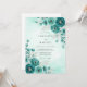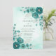 This design features a serene botanical aesthetic with lush teal ranunculus and sprawling eucalyptus greenery. A soft mint watercolor wash creates a refreshing backdrop for the vibrant turquoise floral clusters. Elegant silver-toned leaves add a touch of sophistication to the romantic spring and summer theme.