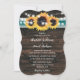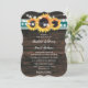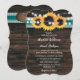 Convites Teal Sunflower Rustic Wood String Lights Wedding