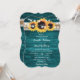 Convites Teal Sunflower Wood Burlap String Lights Wedding