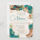 Convites Teal Turquoise Quinceañera Charro Western Rosa