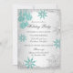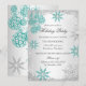 Convite para Festa de Feriado Azul Teal. Design de floco de neve de pérolas de prata. Por favor, note: todas as imagens planas, elas não têm joias reais!