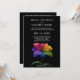 "Vow & Bloom" — a radiant LGBT wedding invitation from the Technicolor Love collection, designed to celebrate love in every shade. At its heart glows the iconic rainblo lily, a multicolored marvel drenched in dew and set against a bold black backdrop. Each petal bursts with vibrant color—red, orange, yellow, green, blue, and violet—symbolizing unity, joy, and the full spectrum of devotion.