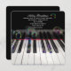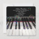 Bolhas flutuantes iridescentes em teclas de piano com reflexo em madeira preta para convite para o piano