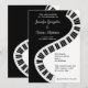 Convite de casamento simples com tema musical. Teclas de piano em preto e branco em um padrão ondulado. Elegante e simples.