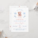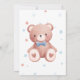 Customizable flat invite: Join us for a baby shower celebrating mother-to-be (name). Add the date, address, and RSVP number. Front features a sweet teddy bear with a blue bow surrounded by soft blue stars, serene fonts and calming pastel colors. The flipside shows a larger version of the bear with stars in the background for a cohesive, gentle look.