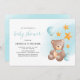 Convide a família e os amigos a celebrarem a chegada futura do seu lindo bebê recém-nascido. Estes bonitos convites para bebês apresentam um fundo branco comum, um ursinho de aquarela, balão azul, estrelas douradas e uma garrafa de bebês, além de um modelo moderno de chá de fraldas que é fácil de personalizar.